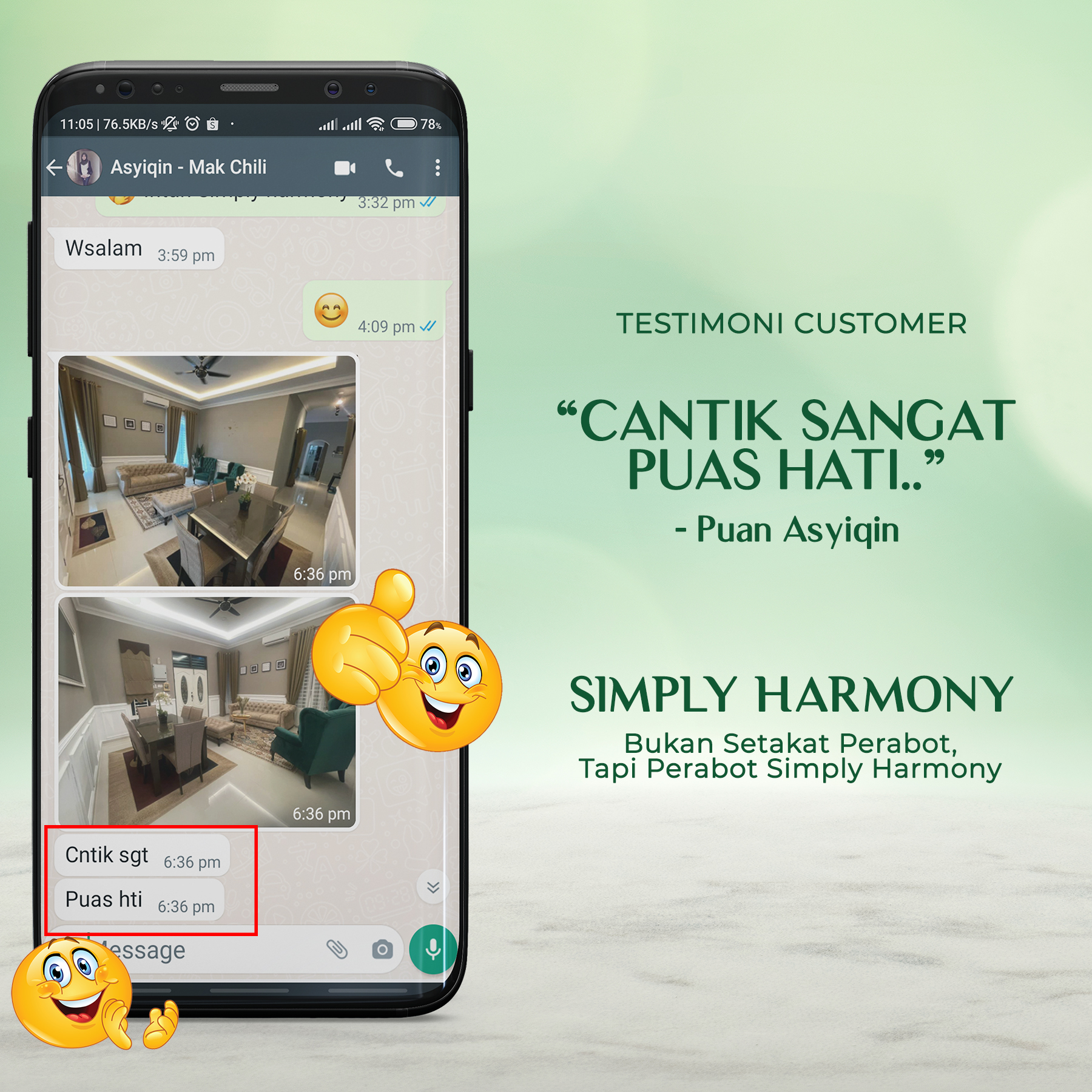 Nampak matching sangat dari segi perabot dan warna rumah customer kita ni. Memang sangat berbaloi dan sedap mata memandang.