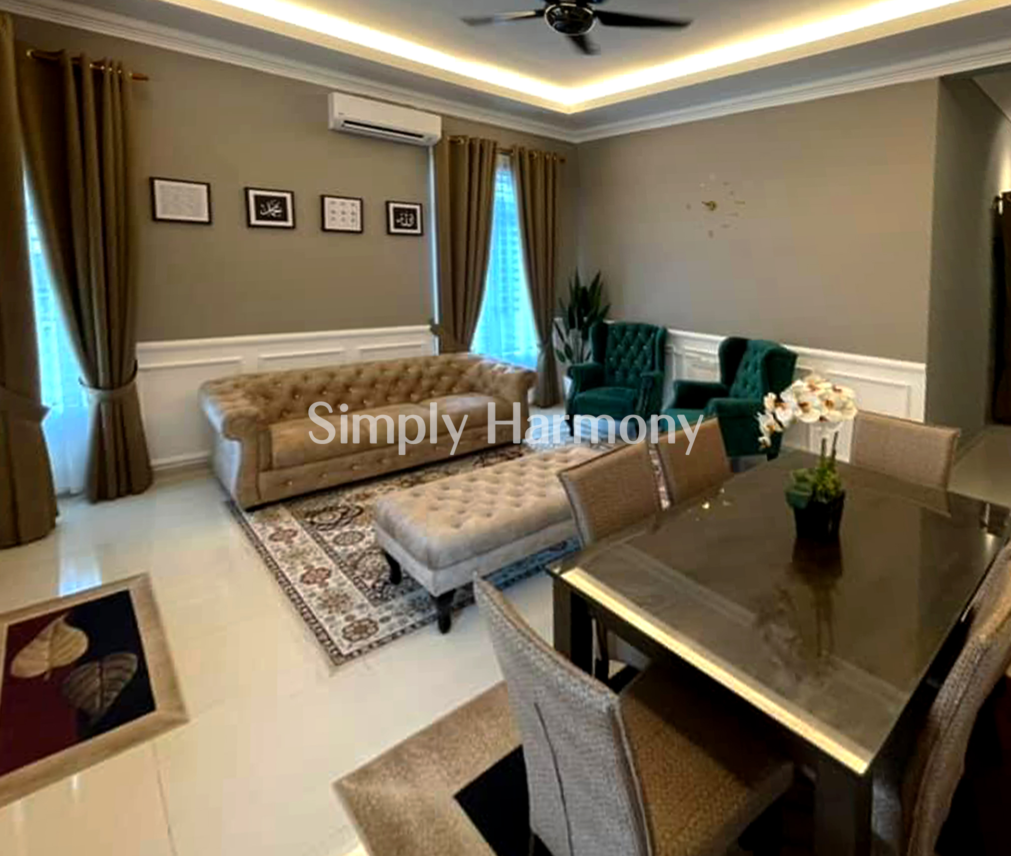 Nampak berseri ruang tamu Kak Asyiqin dengan padanan sofa Chesterfield Dipadankan pula dengan wing chair dan bench chair yang melengkapkan ruang tamu rumahnya. Sungguh indah dan menarik rumah Kak Asyiqin.
